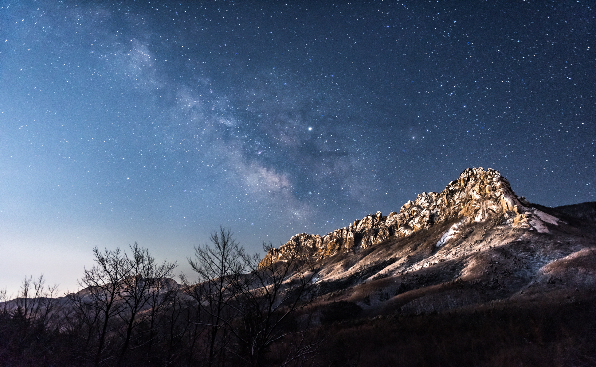 МЛЕЧНЫЙ ПУТЬ У ГОР УЛЬСАНБАВИ ОДЕТЫХ В СНЕЖНОЕ ОДЕЯНИЕ